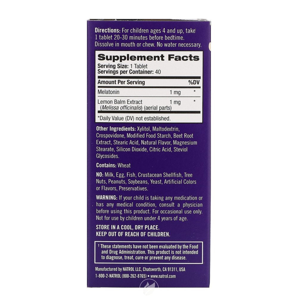 Natrol Kids Melatonin Fast Dissolve Tablets, Helps You Fall Asleep Faster, Stay Asleep Longer, Easy to Take, Dissolves in Mouth, for Ages 4 & Up, Strawberry Flavor, 1Mg, 40 Count - 1 is backordered and will ship as soon as it is back in stock.