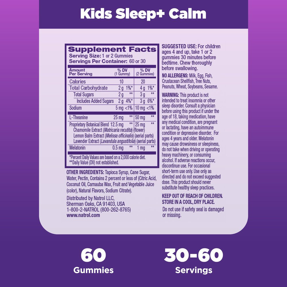 - Natrol Kids Sleep+ Calm blends 99% pure Melatonin to help kids sleep better with L-Theanine to help calm their active minds*