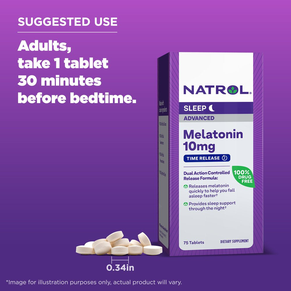 Natrol Melatonin Advanced Sleep Aid Time Release Tablets, Drug-Free, 10Mg, 75 Count