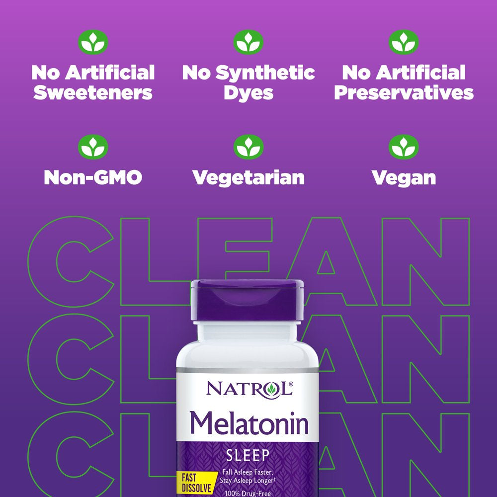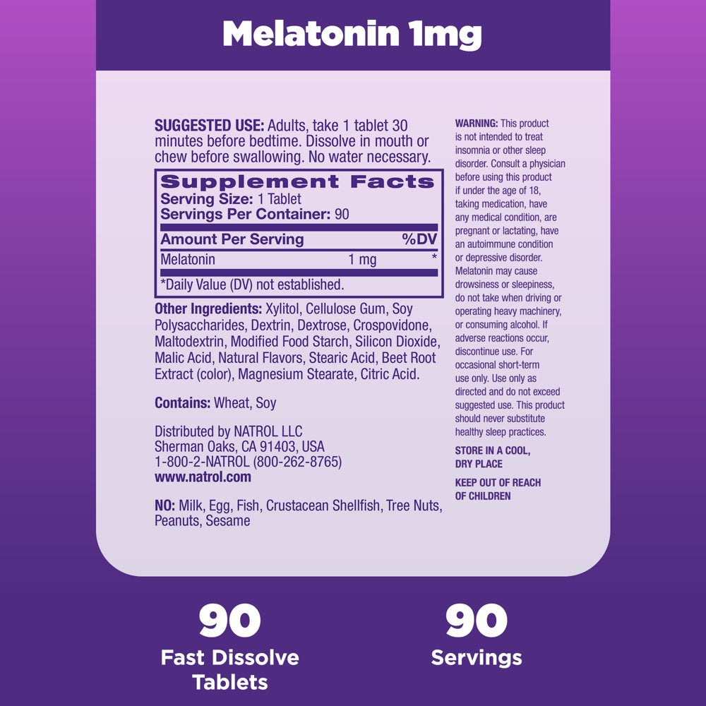 - Natrol Melatonin Fast Dissolve with 1mg of 99% pure melatonin