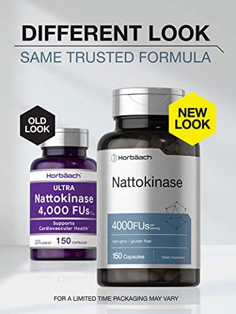 Nattokinase Supplement 4000 FU | 150 Capsules | Non-Gmo, Gluten Free | Supports Cardiovascular and Circulatory Health | by Horbaach