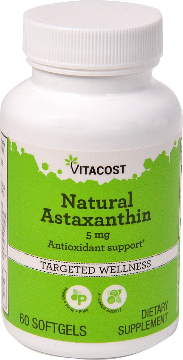 - Provides 5 mg of astaxanthin per single-softgel serving.