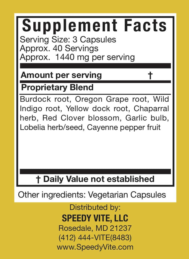 Natural Blood Cleanser Capsules Organic Supplement Speedyvite® (120 Vegetable Powder Capsules) is backordered and will ship as soon as it is back in stock.