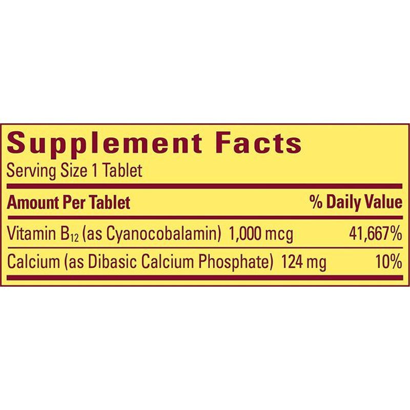 - Ingredients: Dibasic Calcium Phosphate, Stearic Acid, Cellulose Gel, Magnesium Stearate, Cyanocobalamin, Croscarmellose Sodium