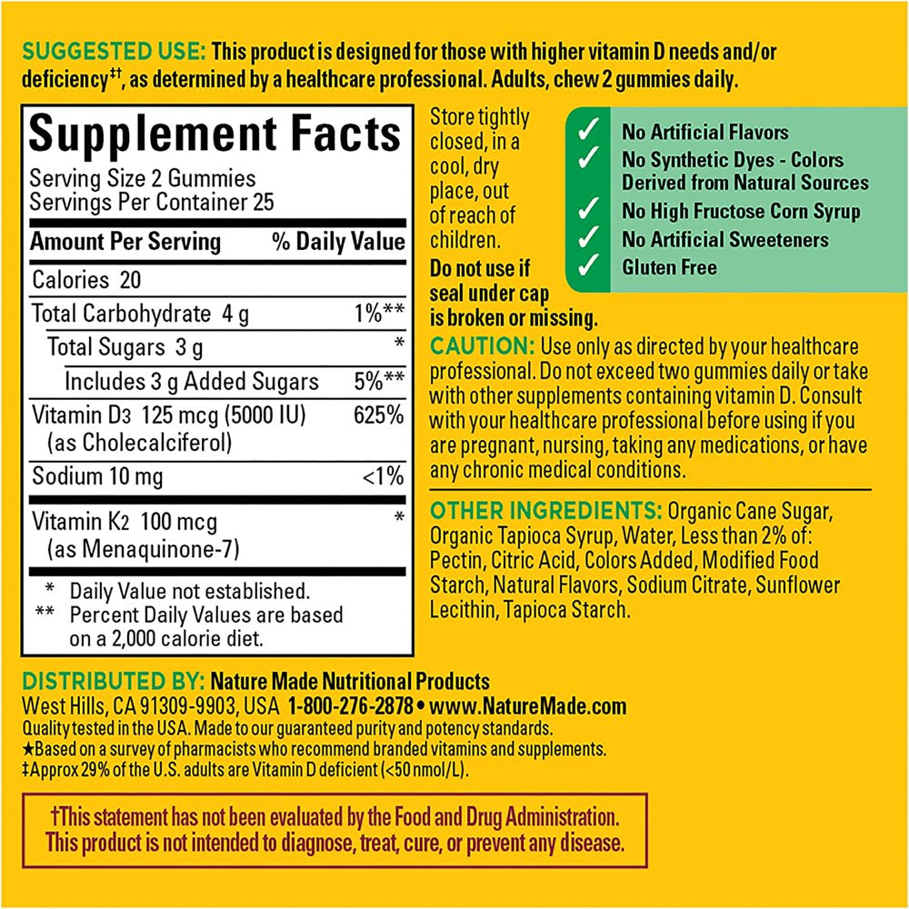 Nature Made Vitamin D3 + K2 Gummies - Peach 50 Gummies is backordered and will ship as soon as it is back in stock.