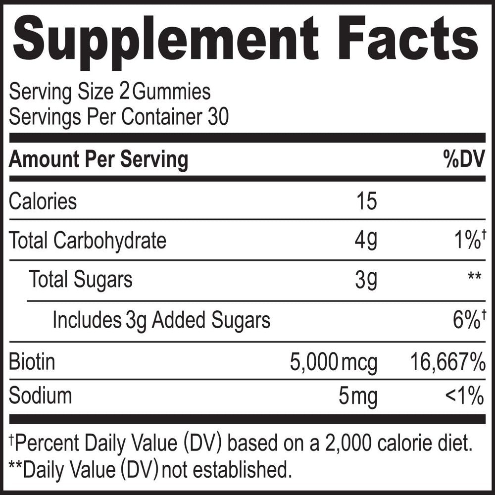 - High Potency Biotin 5000 mcg Gummies: It isn’t always easy to get all the nutrients you need from food. Biotin is an essential nutrient and this supplement can help complement the biotin that you get from your diet.*