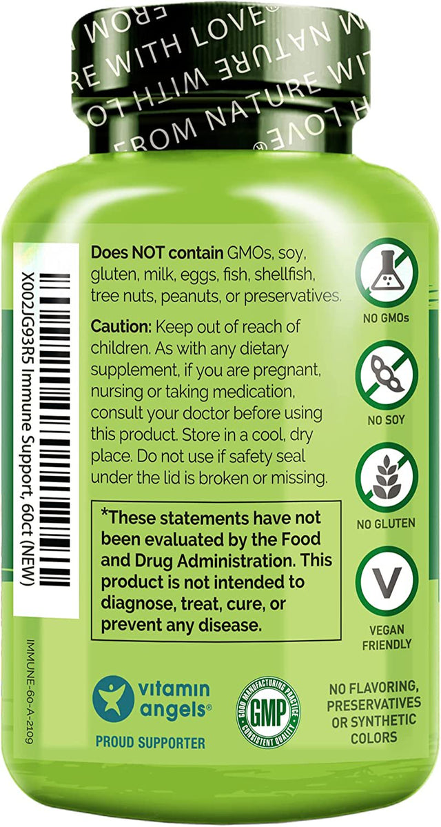 NATURAL IMMUNE SUPPORT: Perfect blend of premium vitamins, minerals, and herbs to support the body s natural immune defenses during any season.,SAMBUCUS BLACK ELDERBERRY: Includes 350 mg of Black Elderberry Extract (Sambucus nigra). Full spectrum extract with the richest source of anthocyanins.,HEALTHY IMMUNE SYSTEM RESPONSE: Balanced blend of time-tested ingredients like Vitamin C, Zinc, and Echinacea root, which have been used traditionally for centuries to help reduce the duration of colds.,PREMIUM QUALITY: Non-GMO, Gluten Free, Soy Free, Vegan & Vegetarian, with NO Preservatives.,SATISFACTION D: Backed by our 100% Money Back . We believe the best supplements come from nature, not from a lab. Experience the NATURELO difference today!