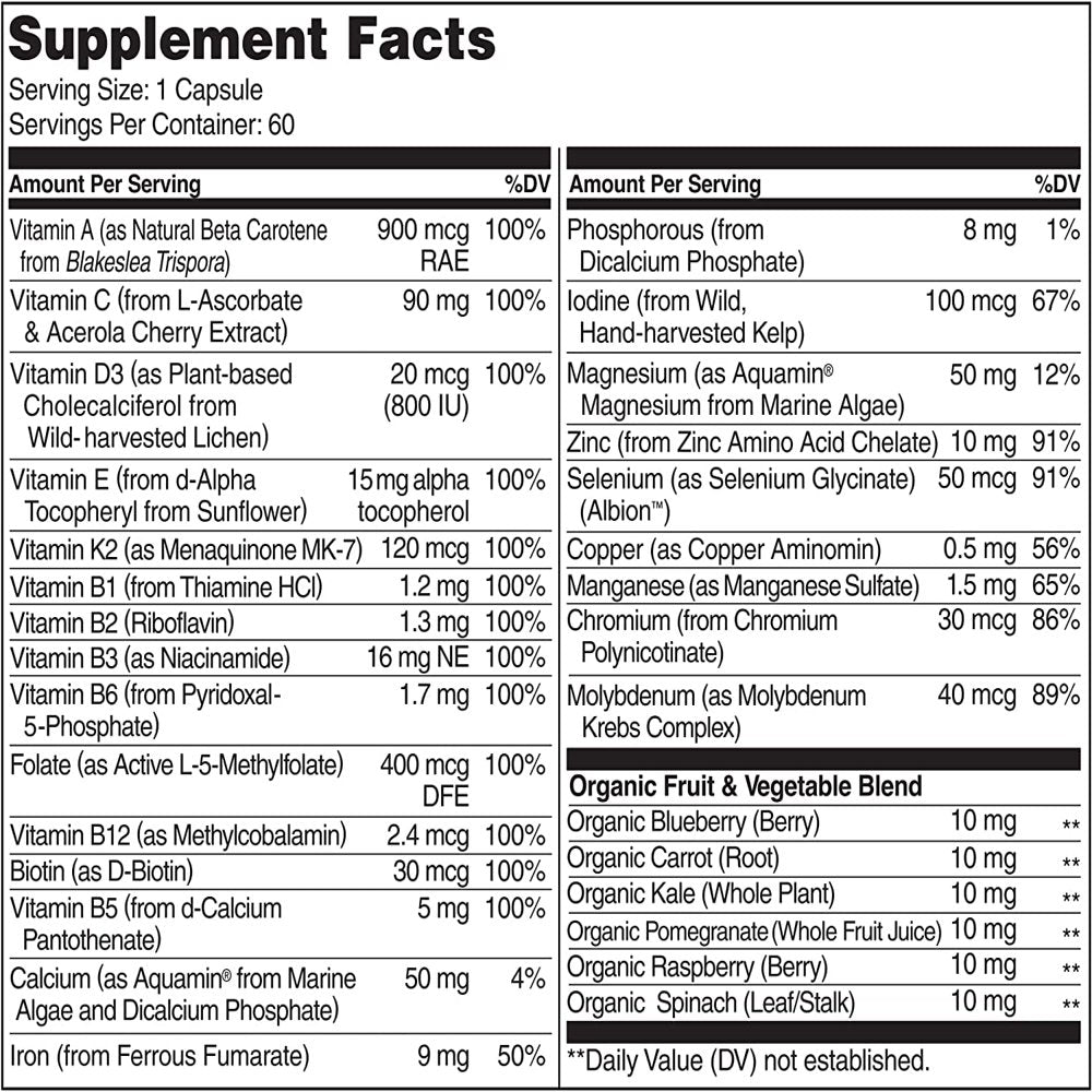- Plant-Based: Featuring premium plant-based vitamins and minerals including as Vitamin D3 from lichen, Vitamin E from sunflower, plant Calcium and Magnesium from marine algae, and Iodine from kelp.