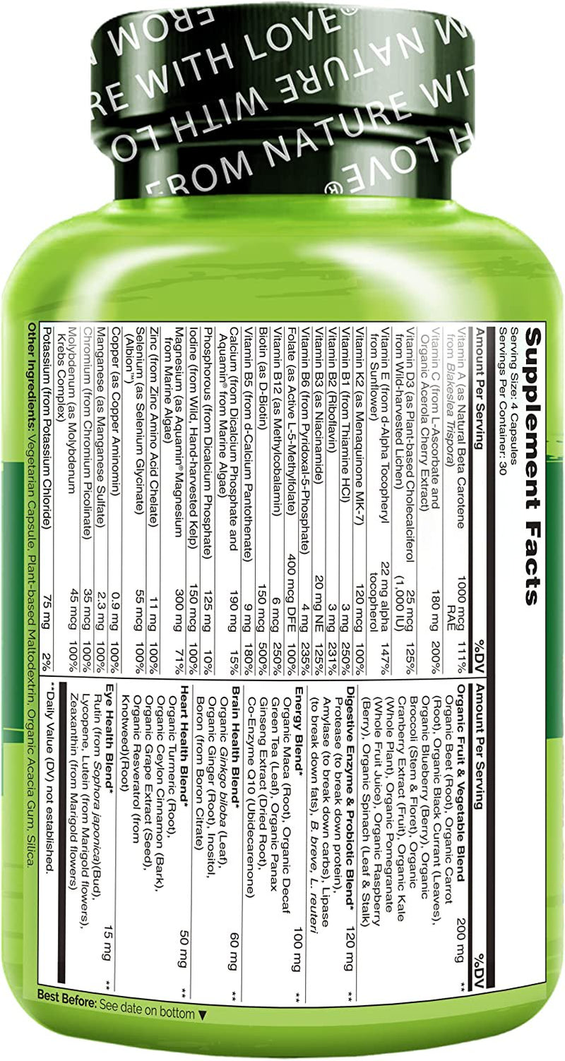 - Whole Food Nutrition: Our multivitamins are made with real, organic fruits and vegetables for that whole food nutrition your body craves, complete with nutritional cofactors that help your body recognize and absorb the nutrients.