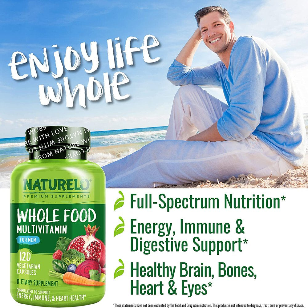 NATURELO Whole Food Multivitamin for Men - with Vitamins, Minerals, Organic Herbal Extracts - Vegetarian - for Energy, Brain, Heart, Eye Health - 120 Vegan Capsules