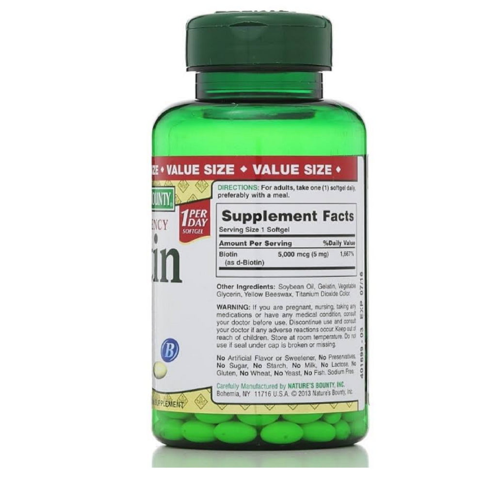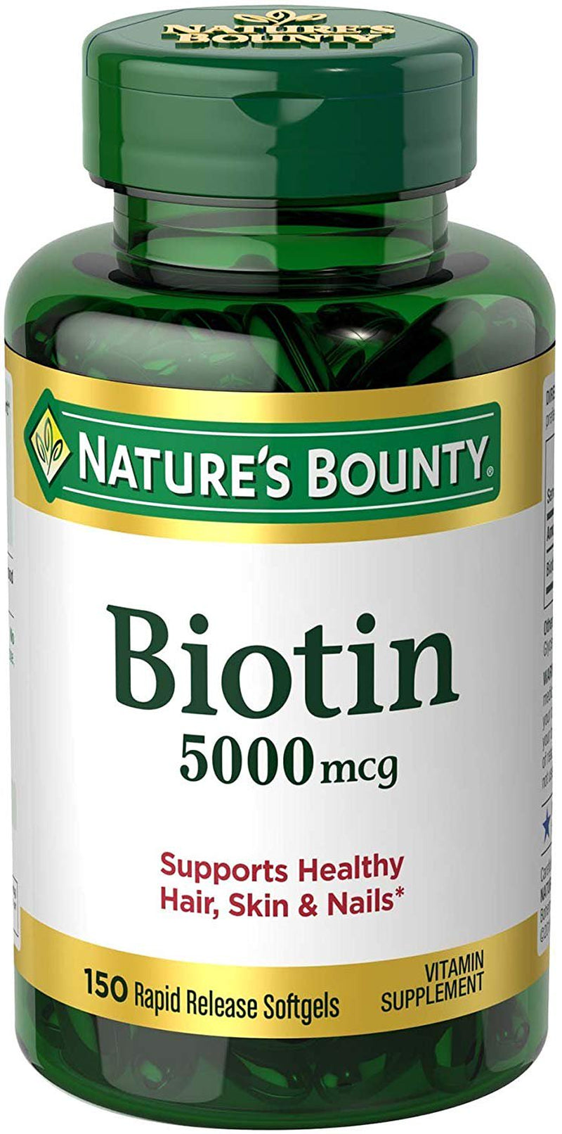 - HAIR HEALTH 150-count, 5000mcg Biotin Rapid Release Softgels. Biotin is the most commonly used vitamin for healthy hair.(1) Nature’s Bounty Biotin 5000mcg combines science and innovation to help support and maintain healthy, beautiful hair.(1)