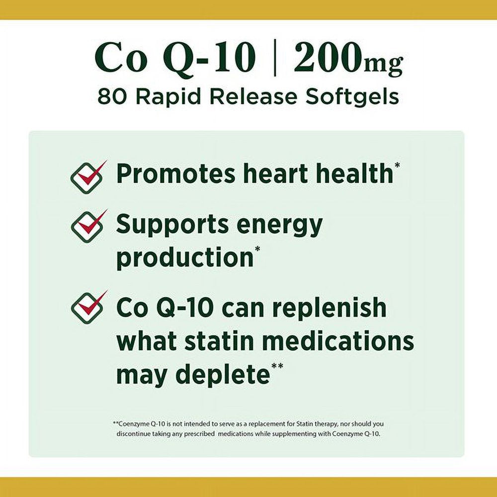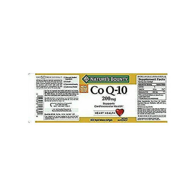 - Pack of 2 for the UPC: 074312020995 The company for all your vitamin and nutritional needs. Active Ingredients: 1 Softgel: Q-Sorb Coenzyme Q-10 200 mg; Rice Bran Oil; Gelatin; Vegetable Glycerin; Soy Lecithin; Titanium Dioxide Color Uses: Q-Sorb Coenzyme Q-10 supports heart health and energy production.* As an antioxidant it helps fight cell-damaging free radicals in the body.* In addition statin drugs can reduce Co Q-10 levels in the body. Co Q-10 can replenish what statin drugs can deplete. Note: Coenzyme Q-10 is not intended to serve as a replacement for statin therapy, nor should you discontinue taking any prescribed medications while supplementing with Co Q-10. No artificial flavor or sweetener. No preservatives, sugar, starch, milk, lactose, gluten, wheat, yeast, fish. Sodium free. *These statements have not been evaluated by the Food and Drug Administration. This product is not intended to diagnose, treat, cure or prevent any disease.
