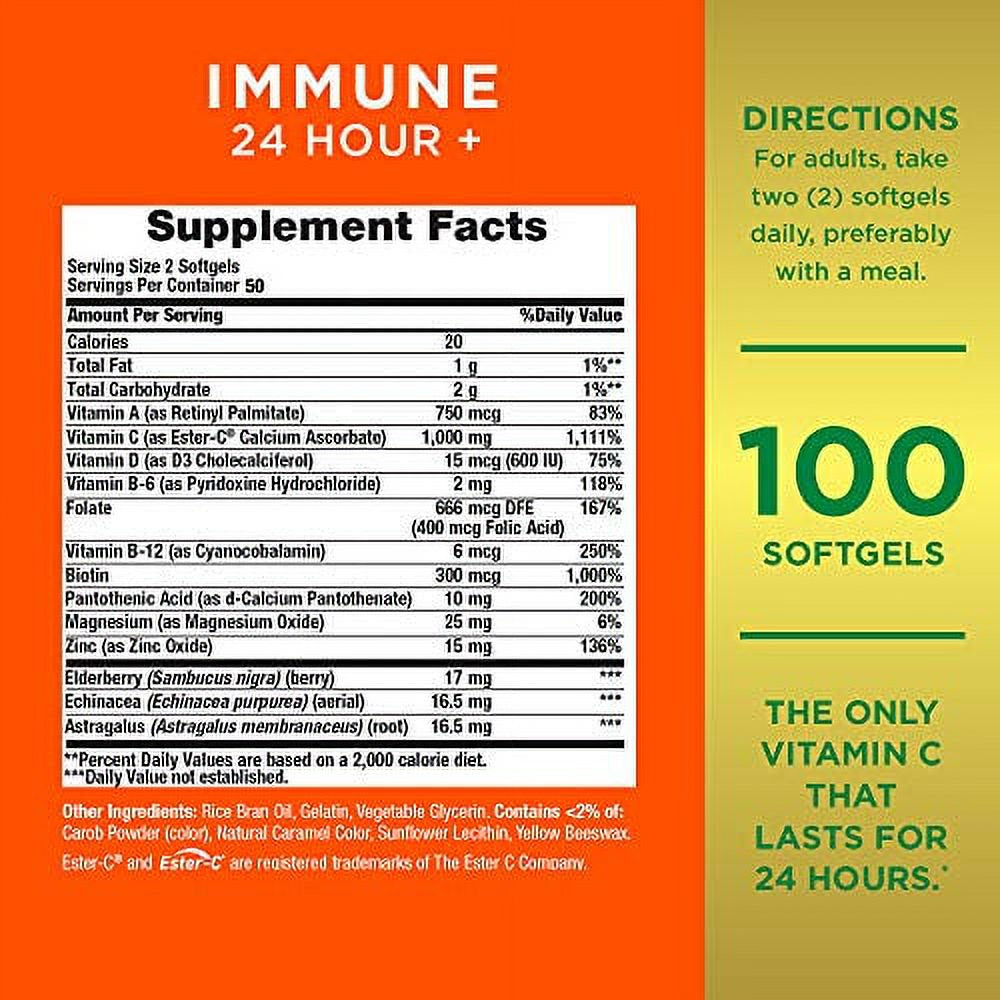 Nature'S Bounty Immune 24 Hour +, 24 Hour Immune Support from Ester C, 100 Rapid Release Softgels, 100 Count