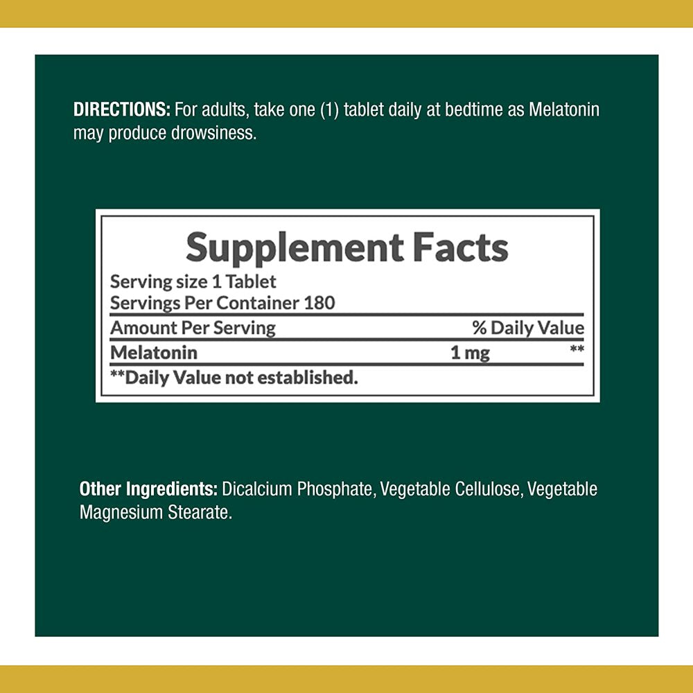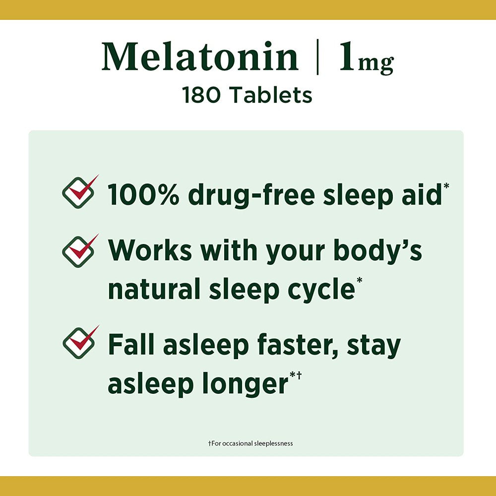 - Nature's Bounty Melatonin 1 mg, 180 Tablets