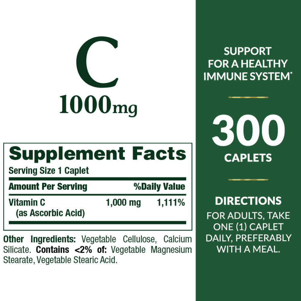 • Nature's Bounty Pure Vitamin C Caplets, 1000 Mg, 300 Ct
