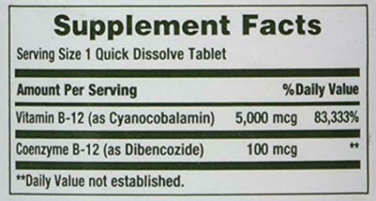 - Nature's Bounty Vitamin B12 5000 mcg Quick Dissolve Tablets, Natural Cherry 40 Each