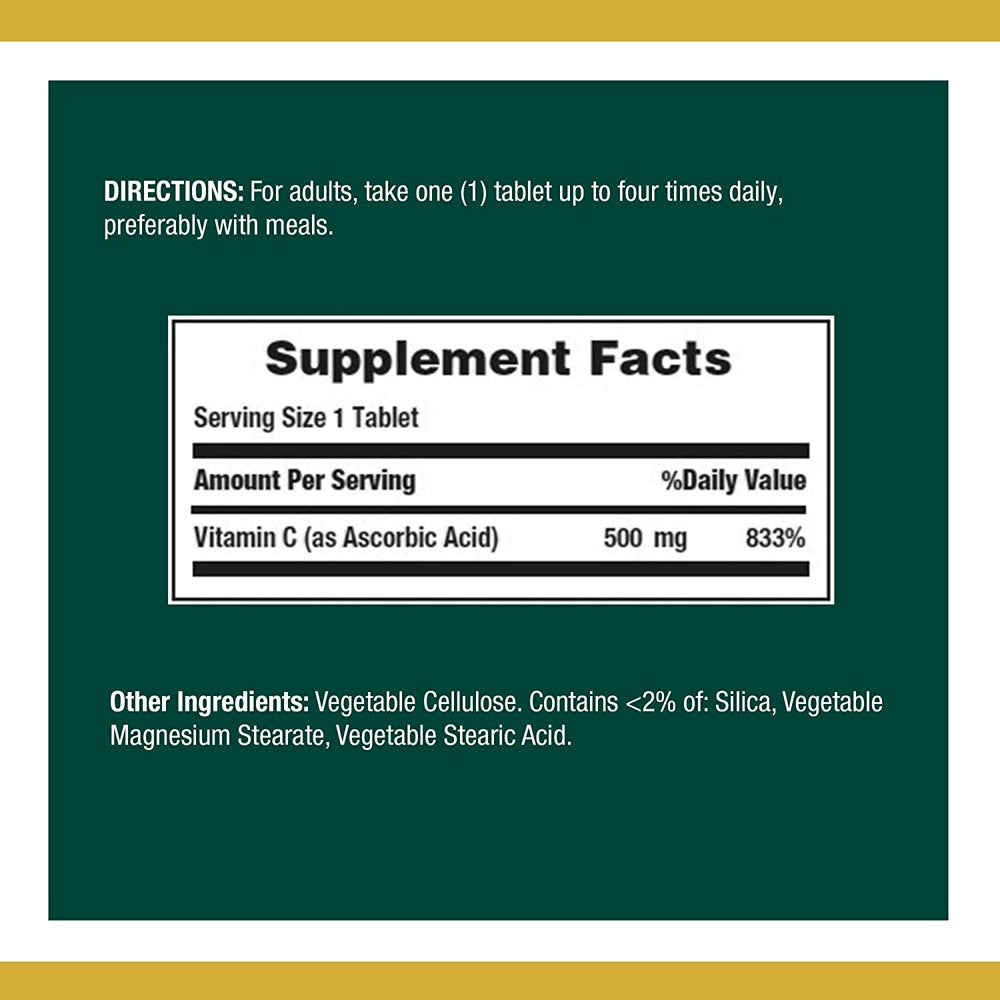 Nature'S Bounty Vitamin C 500 Mg Tablets 100 Ea (Pack of 2) is backordered and will ship as soon as it is back in stock.