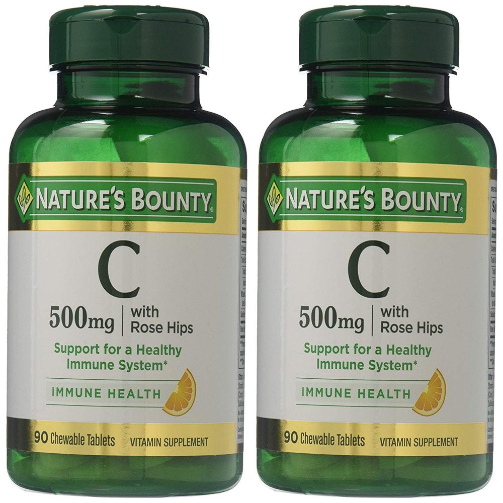 Nature'S Bounty Vitamin C 500 Mg with Rose Hips Chewable Tablets, Orange Flavor 90 Ea (Pack of 2)