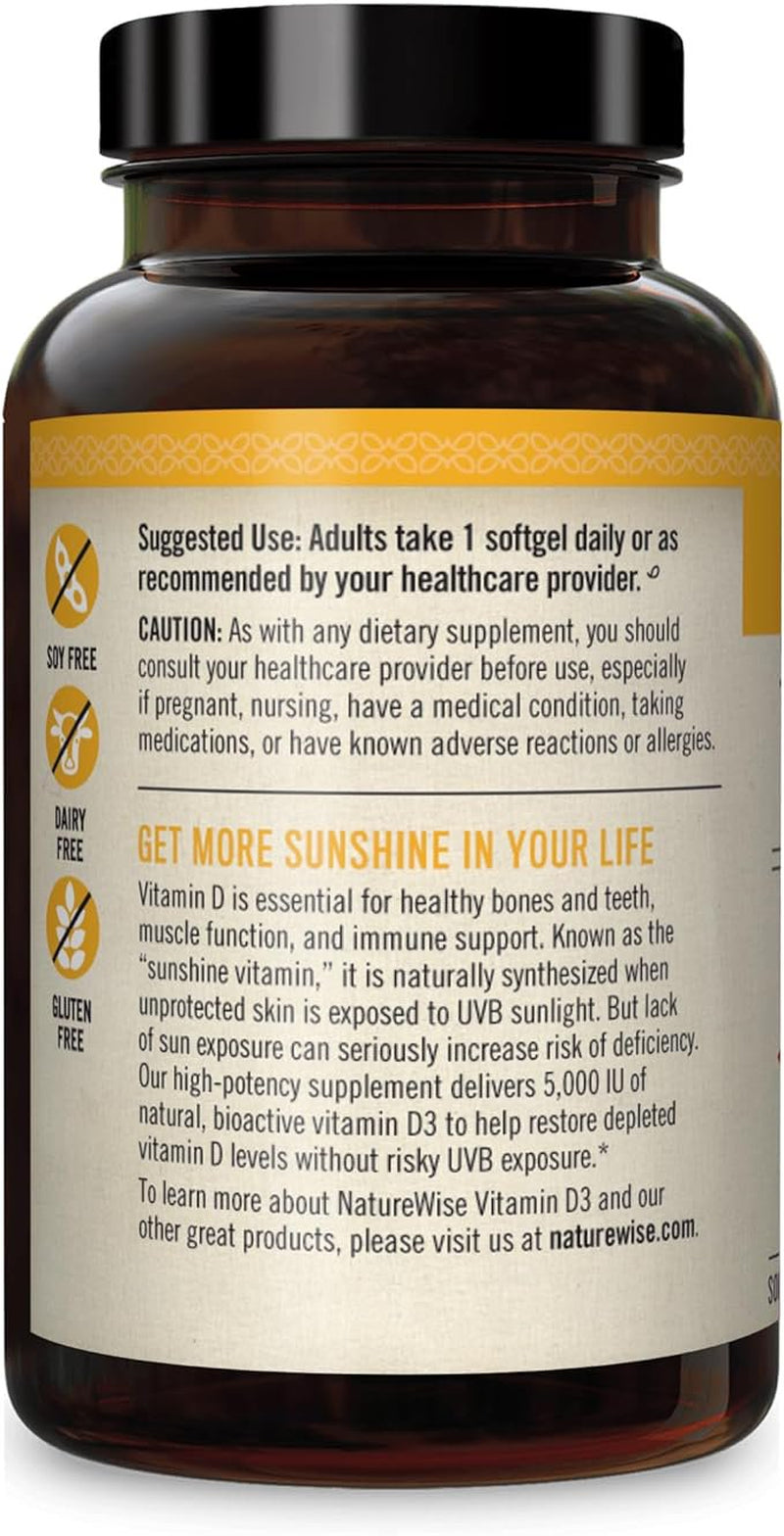 - PURE & NATURAL: NatureWise Vitamin D3 is all natural, non-GMO, and gluten free with no artificial additives, fillers or binders.