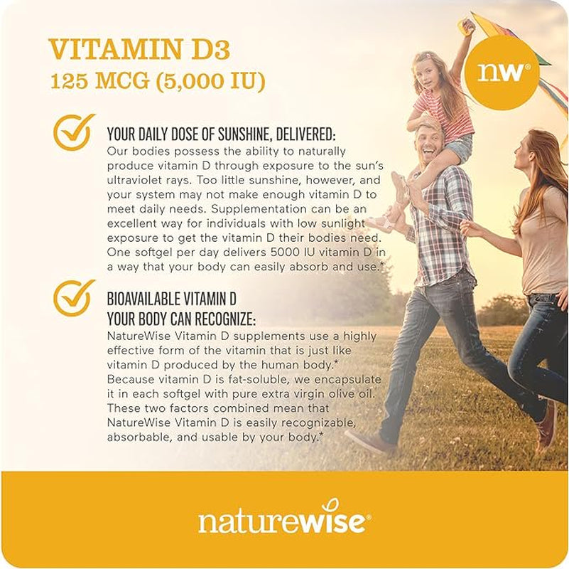 Naturewise Vitamin D3 5000 IU (125Mcg) 90 Softgels