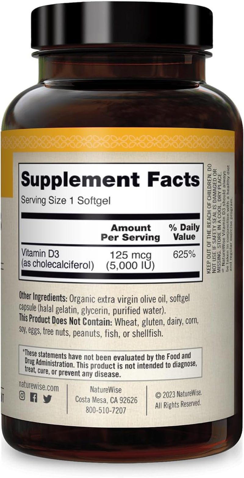 - SUPERIOR ABSORPTION: NatureWise Vitamin D3 is delivered in certified organic olive oil, a healthy fat source that improves bioavailability.*