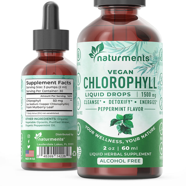 Naturments Chlorophyll Liquid Drops: Pure Chlorophyll Supplements - Natural Deodorant and Liver Detox Supplement - Clorofila Concentrate with Organic Peppermint Oil - 30 Servings, 60 Ml