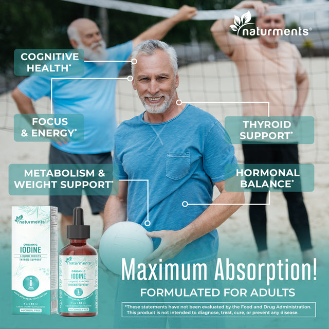 Naturments Iodine Supplement Organic Liquid Drops | Thyroid Support, Hormone Balance, Optimal Weight and Detox Cleanse | Potassium Iodide | Non-Gmo, Vegan, Alcohol-Free (1 Year Supply) 1 Fl Oz- 30Ml