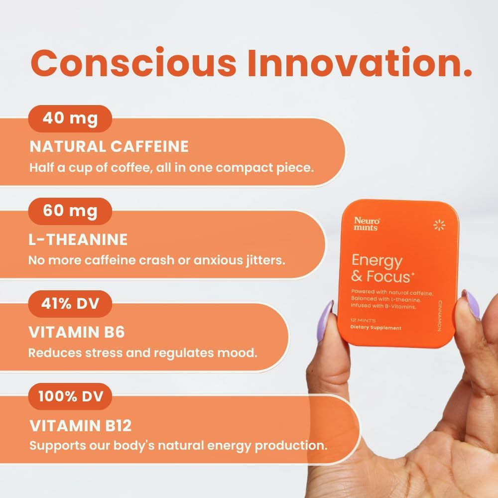 Neurogum Energy Caffeine Mints (72 Pieces) - Sugar Free with L-Theanine + Natural Caffeine + Vitamin B12 & B6 - Nootropic Energy & Focus Supplement for Women & Men (12 Count (Pack of 6)) is backordered and will ship as soon as it is back in stock.
