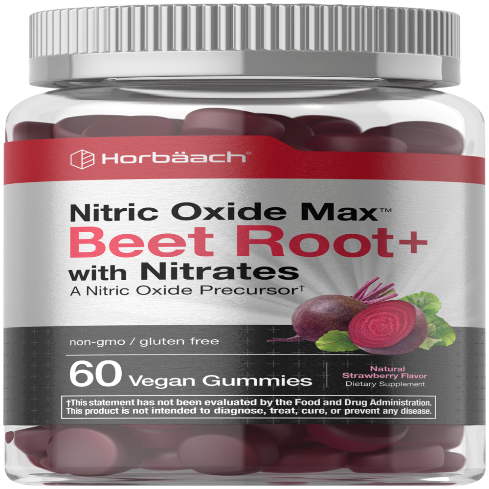 Boost your daily routine with Horbaach’s Nitric Oxide Max Beet Root Gummy! These vegan gummies provide 6,020 mg per serving of a Nitric Oxide Precursor Blend* which includes Beet Root and Black Pepper Extract, plus Vitamin C for ultimate daily support. They’re bursting with natural strawberry flavor and made without artificial flavor or artificial sweetener, so nothing will stand in your way of feeling your best every day.