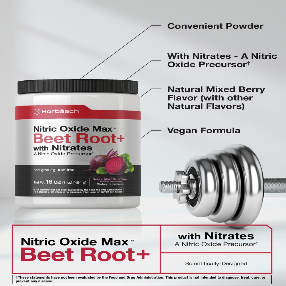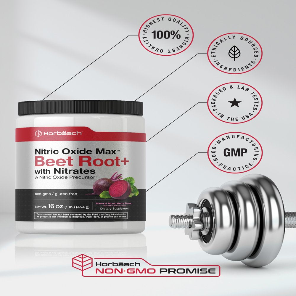Nitric Oxide Beet Root Powder Supplement | 16 Oz (454G) | Natural Mixed Berry Flavor | with Nitrates | by Horbaach