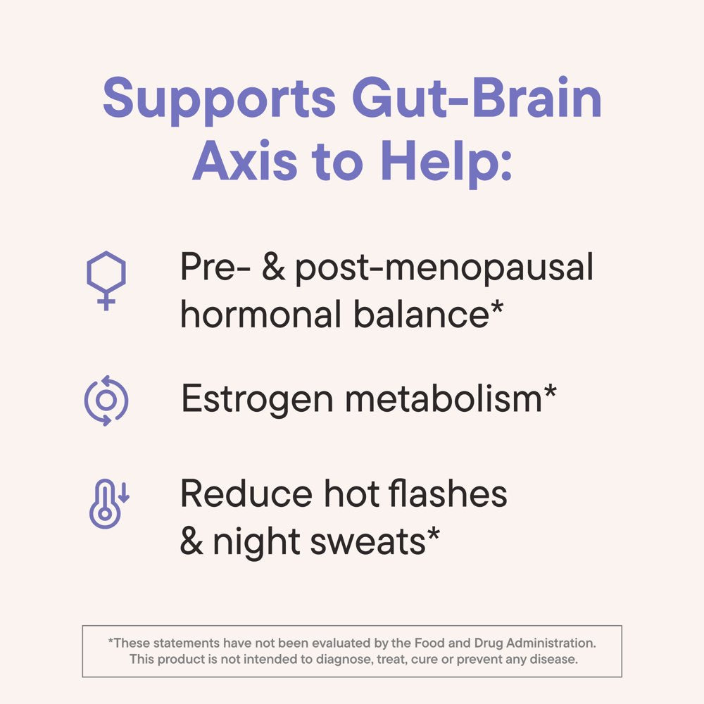 - Clinically proven to support healthy estrogen metabolism, hormonal balance, and microbiome diversity