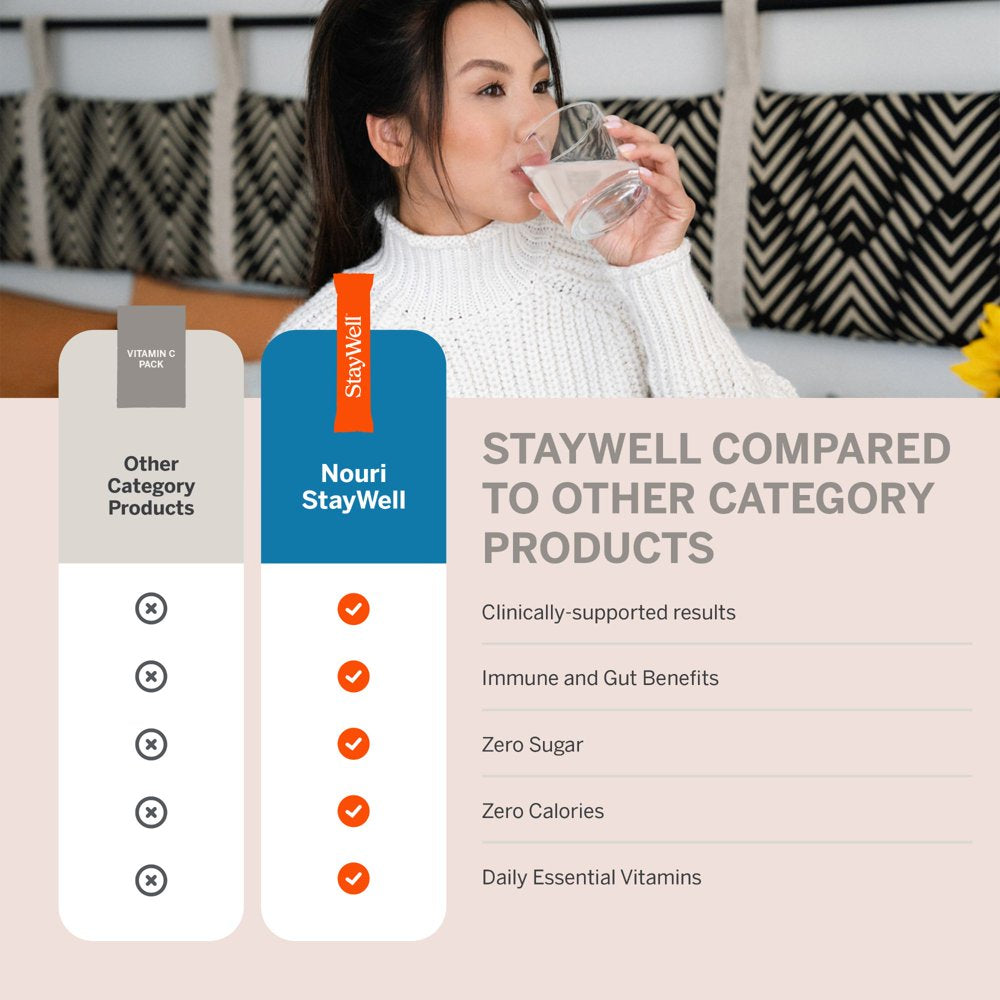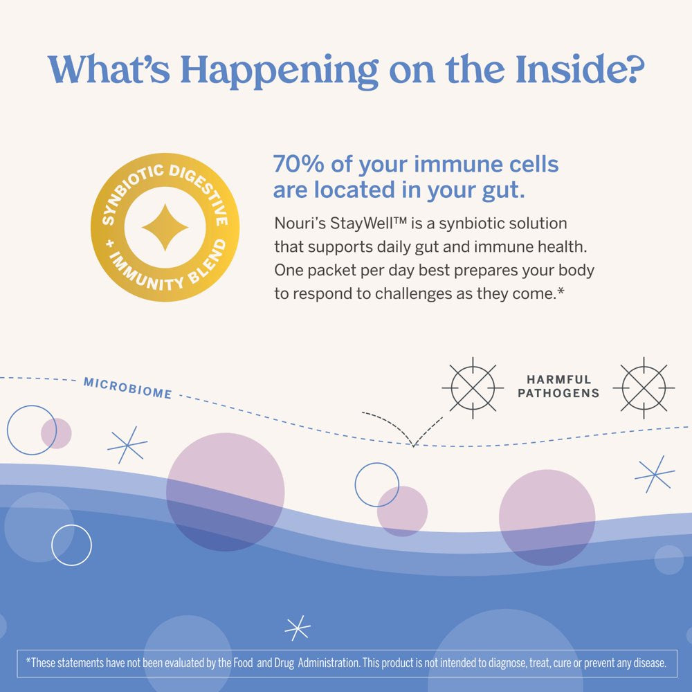 - Each StayWell packet delivers prebiotics, probiotics, immunobiotics, and daily vitamins
