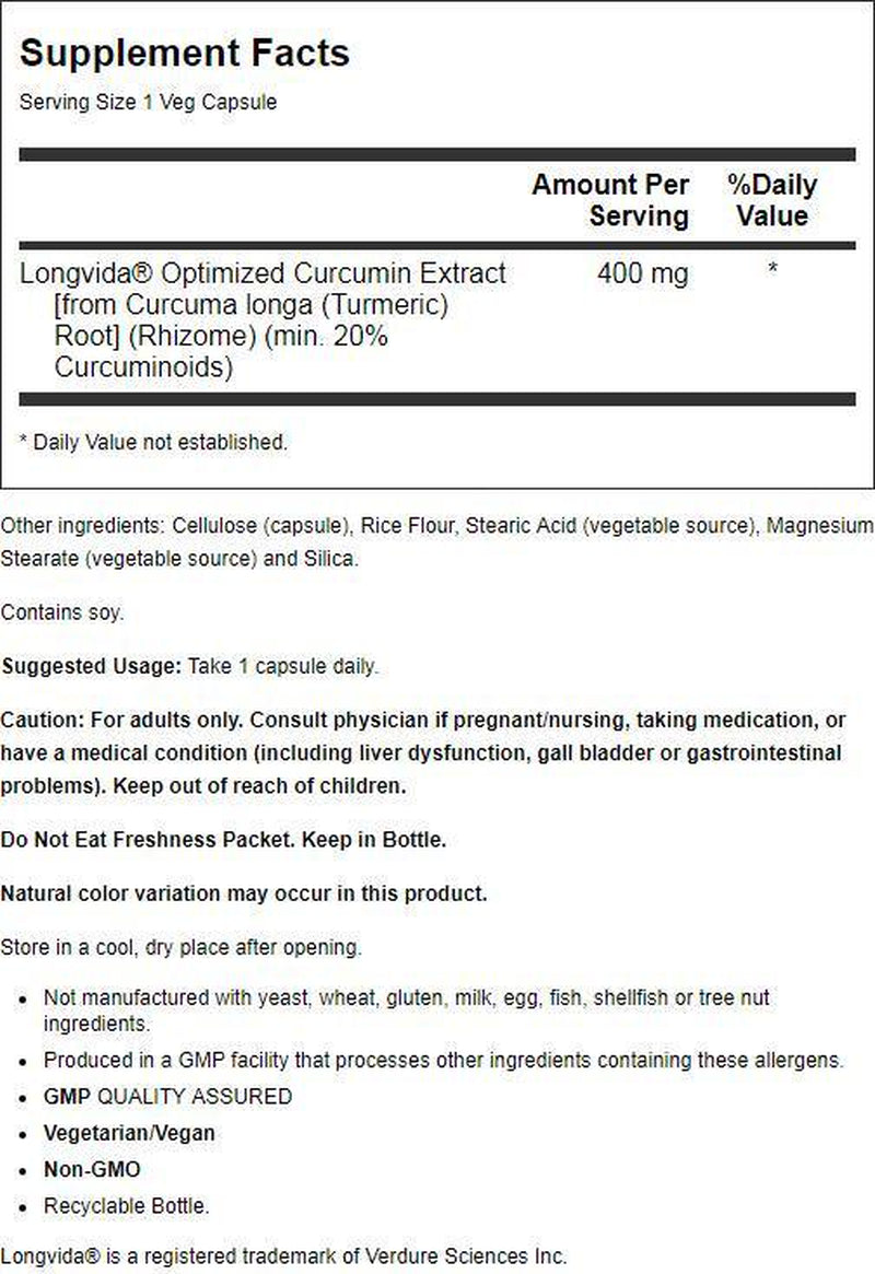 Curcumin is a powerful free radical neutralizer that is known to support balanced immune function, but is also known to have poor bioavailability.* NOW® CurcuBrain™ features Longvida® Optimized Curcumin, which in studies exhibits up to 65 times the bioavailability of free curcuminoids compared with generic curcumin.* Longvida® is absorbed by the GI tract and delivered to the rest of the body as free curcumin, the active form in the body.* Longvida® is shown to penetrate the blood-brain barrier for the support of healthy neuronal tissues.* LONGVIDA® extract is patented under US 9192644 & EP 1993365 (other patents pending) and LONGVIDA® is a registered trademark of Verdure Sciences Inc. Natural color variation may occur in this product.