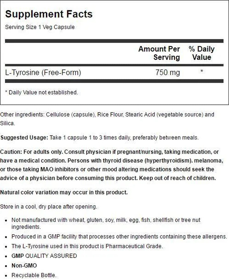 - PHARMACEUTICAL GRADE/HEALTHY GLANDULAR FUNCTION*: L-Tyrosine is especially critical for the normal function of the thyroid gland.*