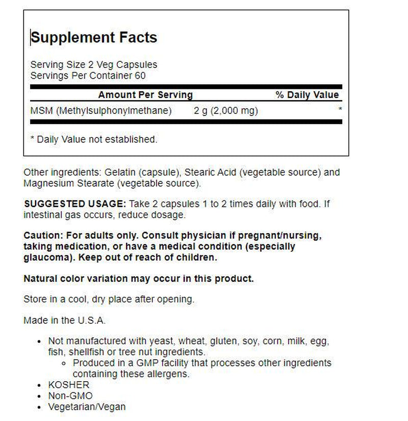 - VEGAN CAPSULES/SUPPORTS HEALTHY CARTILAGE*: Sulfur compounds are found in all body cells and are indispensable for life.*