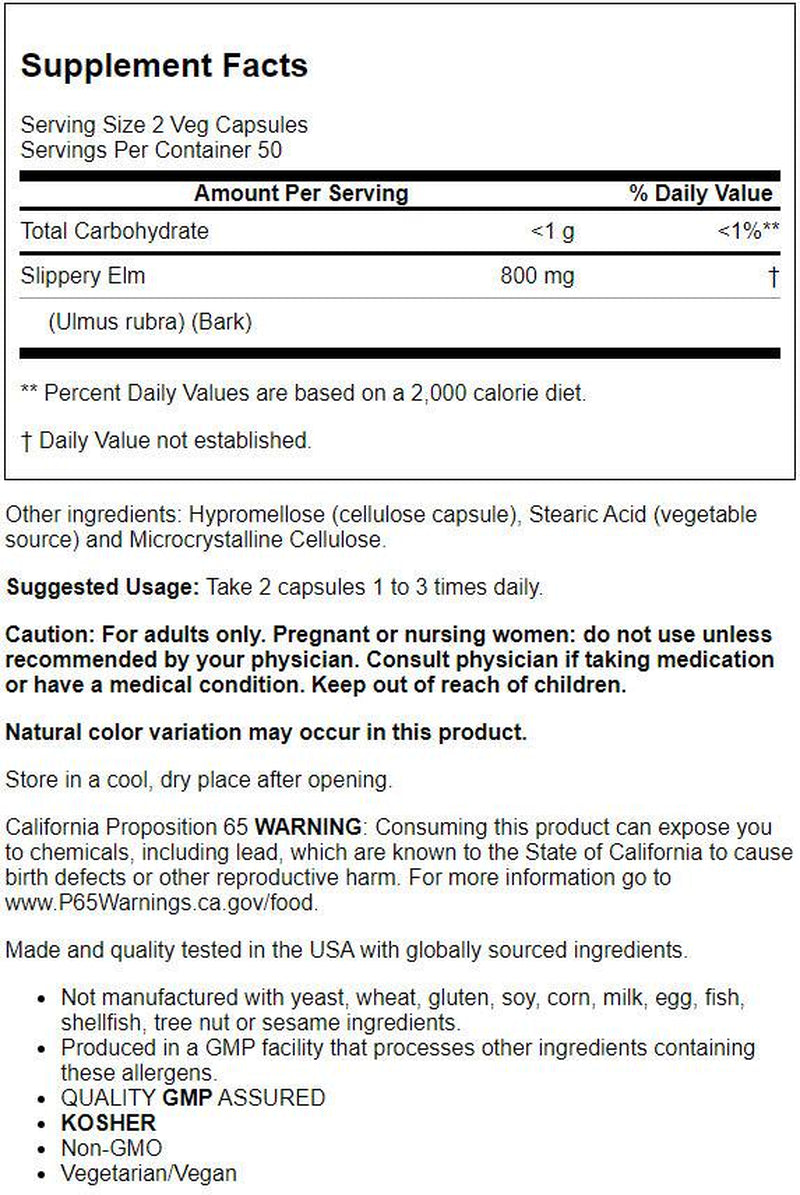 NOW Supplements, Slippery Elm (Ulmus Rubra) 400 Mg, Herbal Supplement, 100 Veg Capsules is backordered and will ship as soon as it is back in stock.