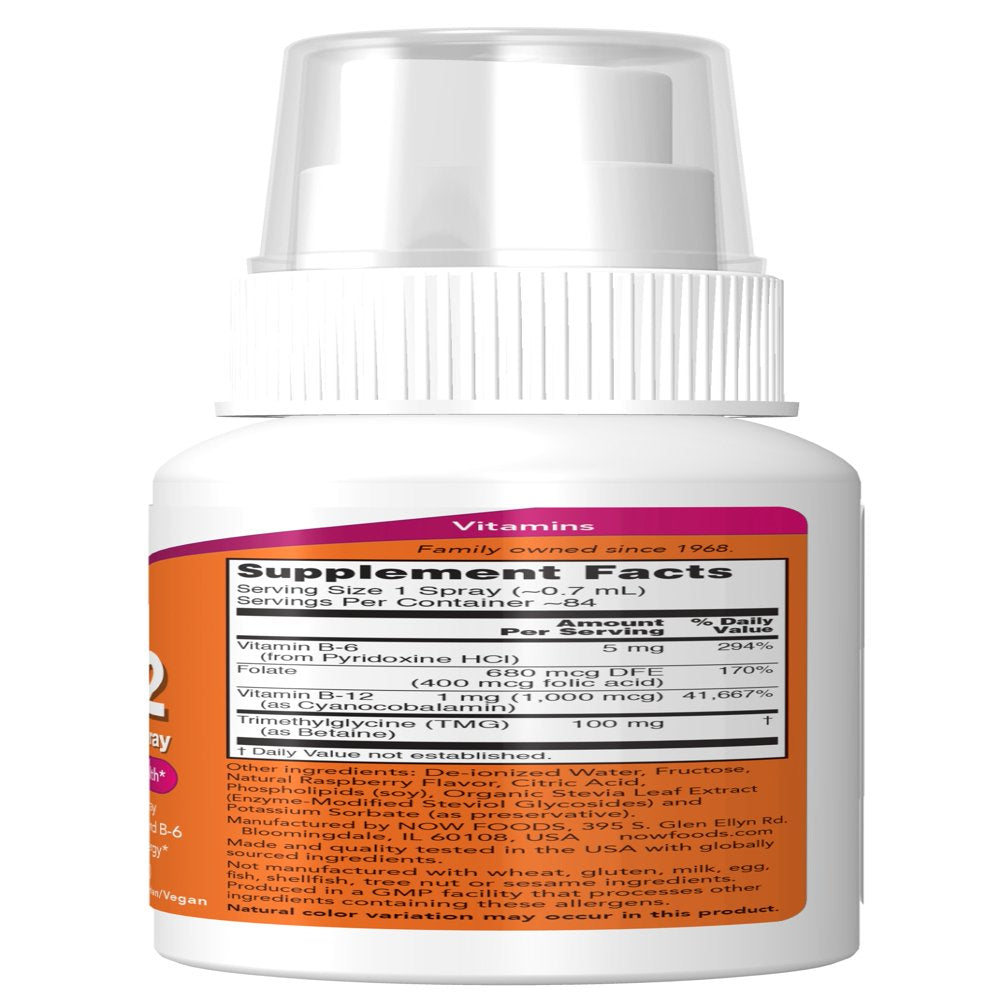 NOW Supplements, Vitamin B-12 Liposomal Spray with Folic Acid, TMG and B-6, 2-Ounce