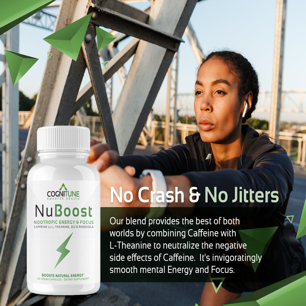 Advanced Smooth Energy & Focus Supplement - Boost energy and alertness while feeling calm with Nu Boost from CogniTune. Our L Theanine Caffeine blend works together to promote smooth, sustained mental energy and focus throughout the day.