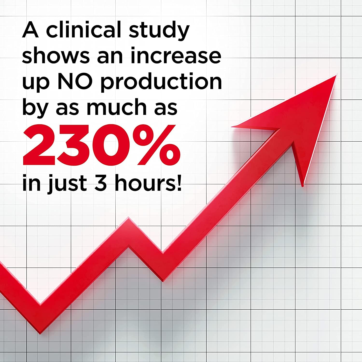 - A clinical study shows an increase in nitric oxide levels by as much as 230% in just 3 hours. Boosting NO helps support healthy blood flow, cardiovascular health, and increased muscle pumps