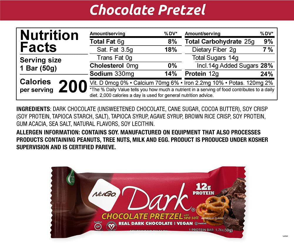 Nugo Dark Pretzel and Sea Salt, 12G Vegan Protein, 200 Calorie, Gluten Free, 24 Count