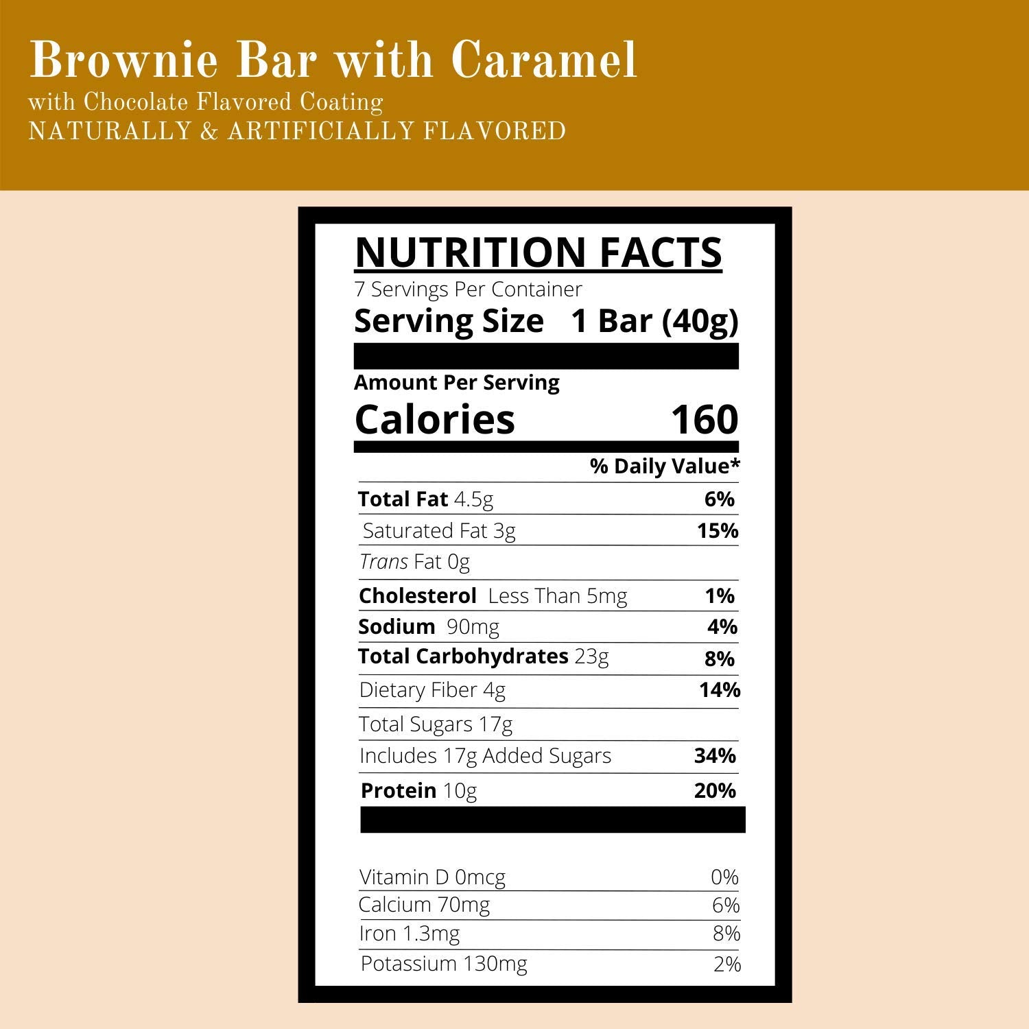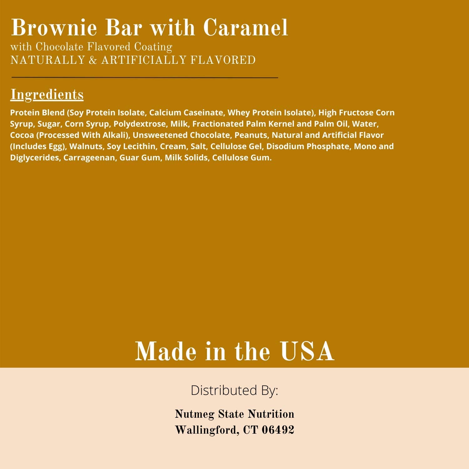 Nutmeg State Nutrition High Protein Snack Bar / Diet Bars - Brownie Bar with Caramel (7Ct) - Trans Fat Free, Aspartame Free, Kosher, Gelatin Free