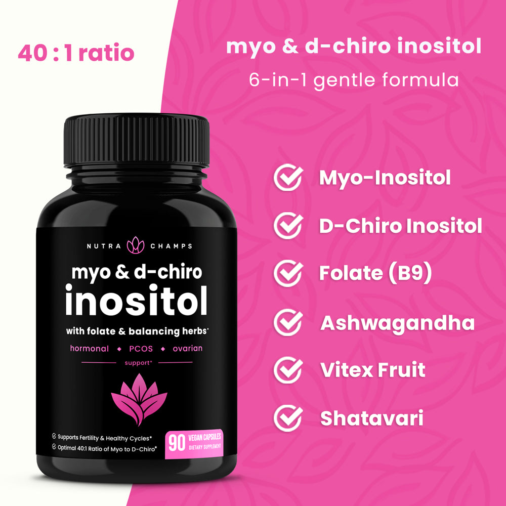 - Ovarian, Menstrual & Fertility Support - Our clinically designed blend of inositol and herbs kicks your feminine energy into high-gear. Studies show that 2000 mg of Myo-inositol is the ideal dose for reproductive support. Get ready for healthier ovaries and easier menstrual cycles!