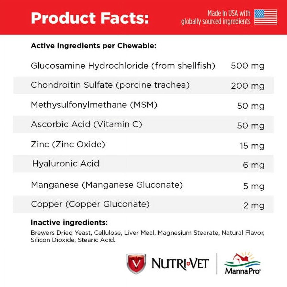 - ADVANCED HIP & JOINT SUPPORT: Each chewable tablet contains extra-strength levels of glucosamine for dogs (500 mg), plus chondroitin and MSM to help dogs maintain healthy canine joint function and connective tissue.