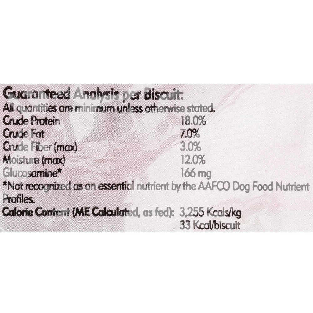 - 166MG GLUCOSAMINE FOR DOGS - More Glucosamine per dog biscuit than other leading brands. Helps ease discomfort of sore, stiff muscles and joints due to daily exercise while soothing aches and pains associated with strenuous activity.
