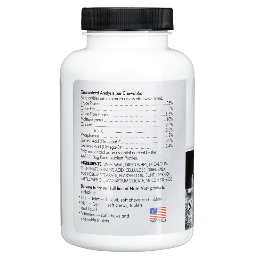 Nutri-Vet Shed-Defense Max liver flavor chewables contain essential fatty acids from natural source vegetable oils to promote skin and coat health and help support normal shedding.