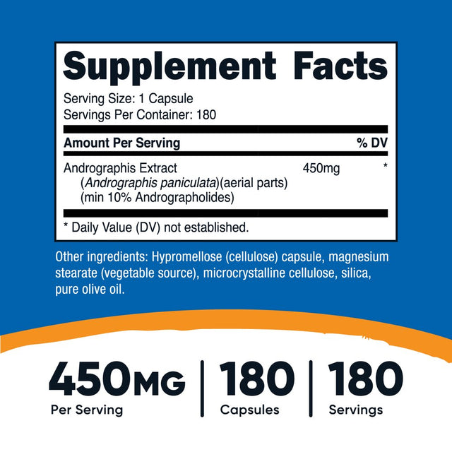 | Product Name | Nutricost Andrographis Extract 450mg, 180 Vegetarian Capsules - Non-GMO & Gluten Free Supplement |