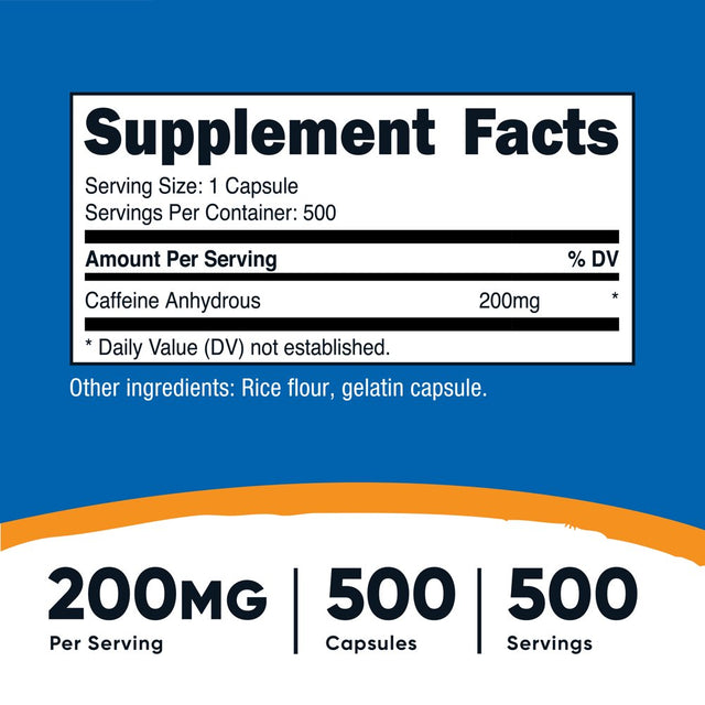 Nutricost Caffeine 500 Capsules, 200Mg per Capsule - Gluten Free & Non-Gmo Supplement