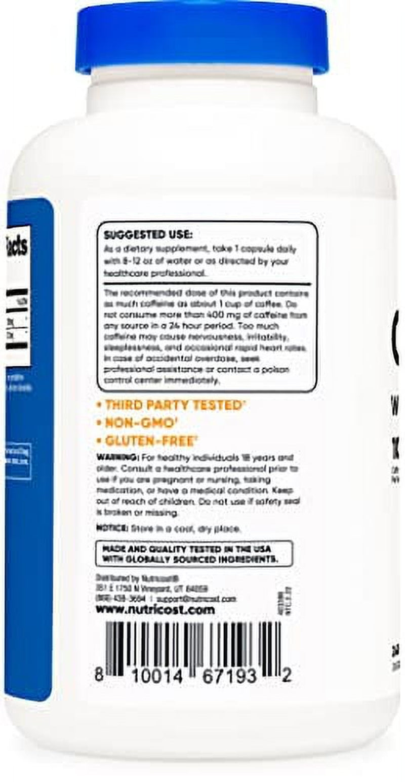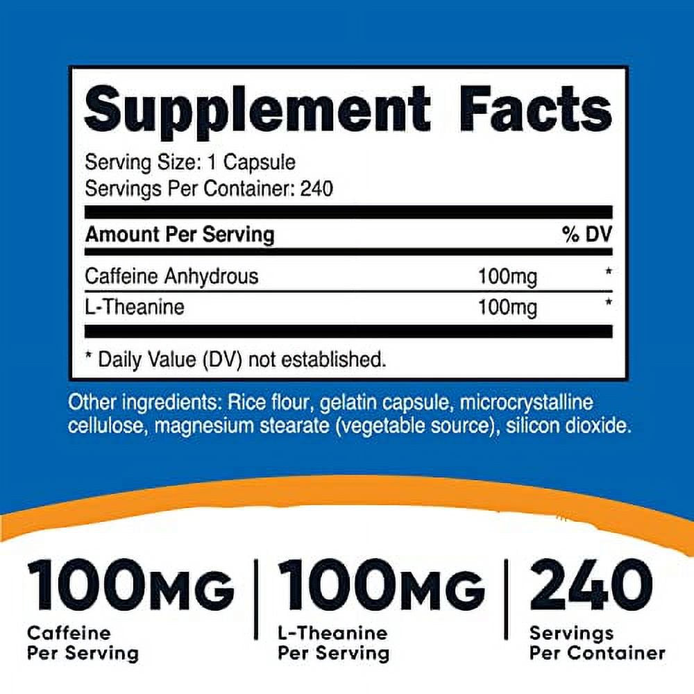 Nutricost Caffeine with L-Theanine, 100Mg of Each, 240 Capsules, 240 Servings - Non-Gmo and Gluten Free is backordered and will ship as soon as it is back in stock.