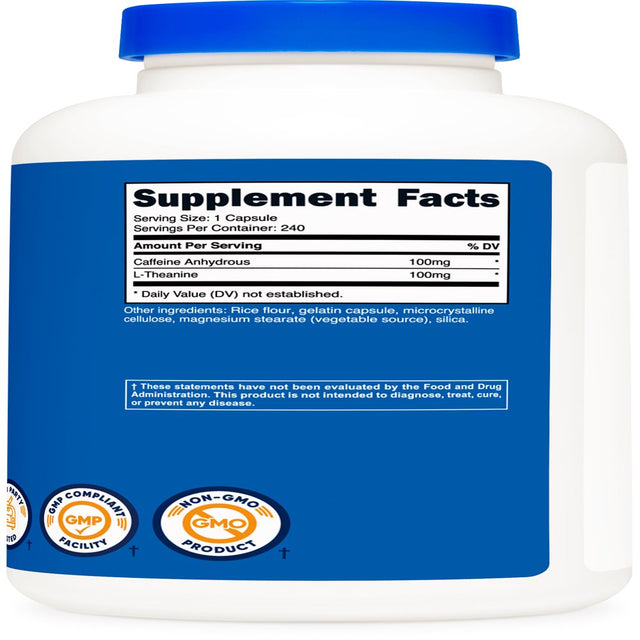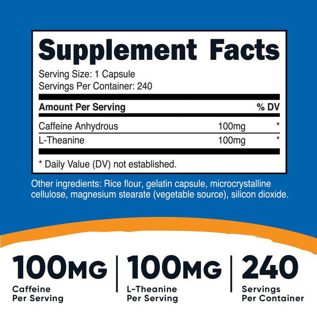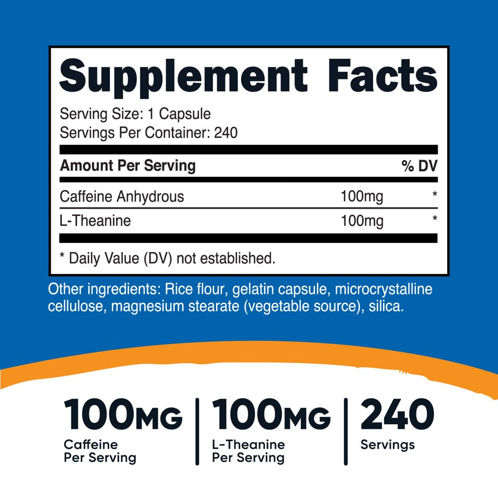 Nutricost Caffeine with L-Theanine Supplement, 100Mg of Each, 240 Capsules