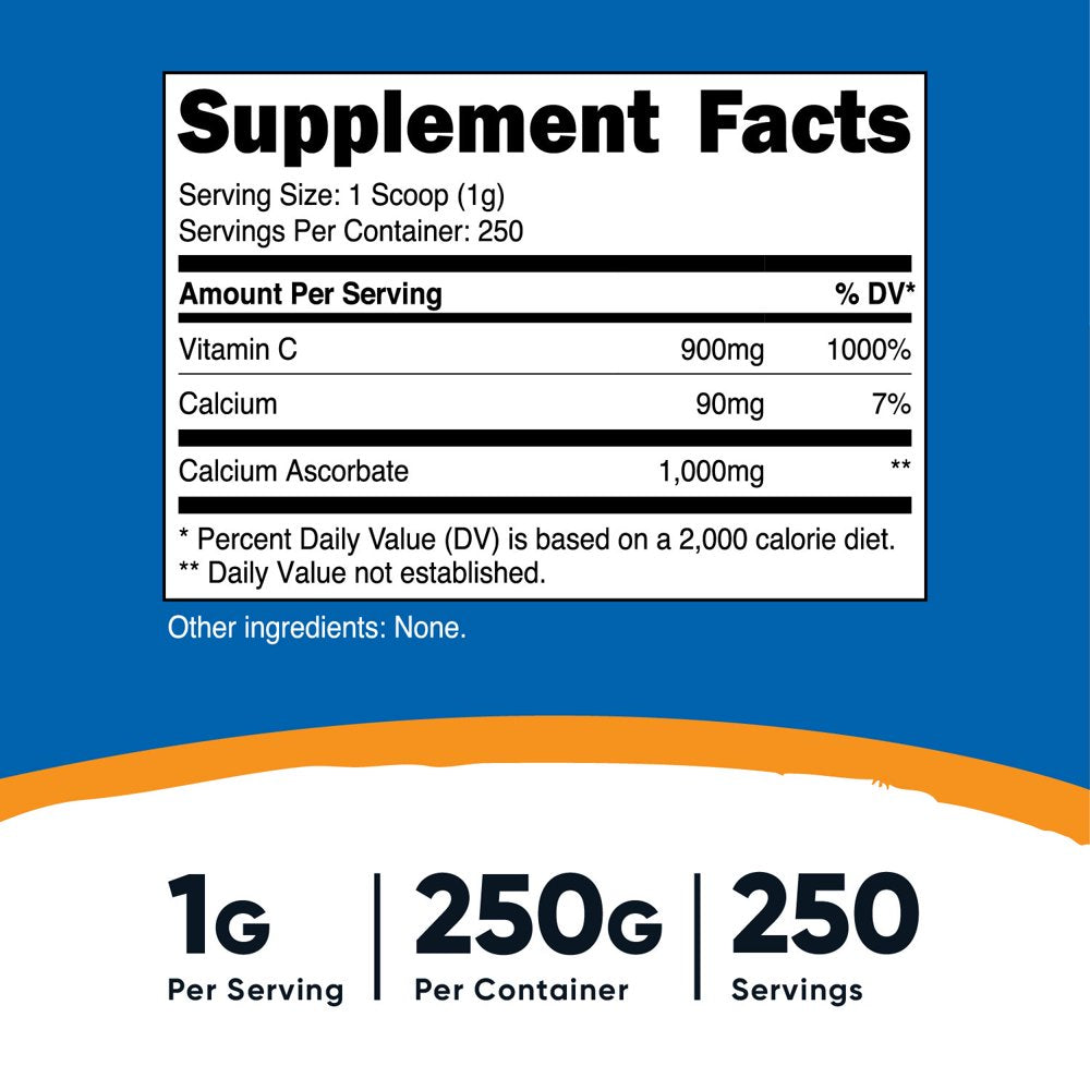 Nutricost Calcium Ascorbate (Vitamin C) Powder, 250G, 250 Serving